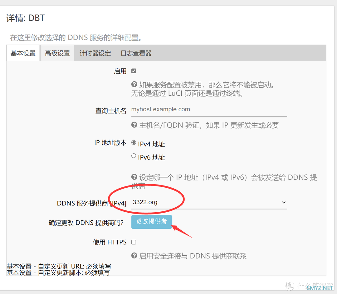 DDNS服务商[IPV4]选择为3322.org(可以随便选,找一个自己喜欢的即可)