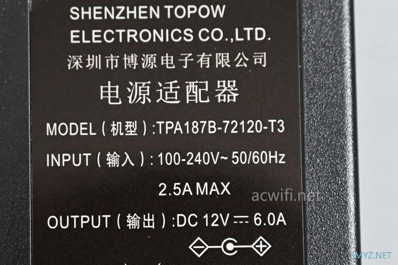 包含一根六类网线,三脚插的电源线,电源好大一个,输入规格是12V/6A,实测待机功率是14.5W左右,如果插上光电转换模块和10G电口,待机功率是19.5W。
