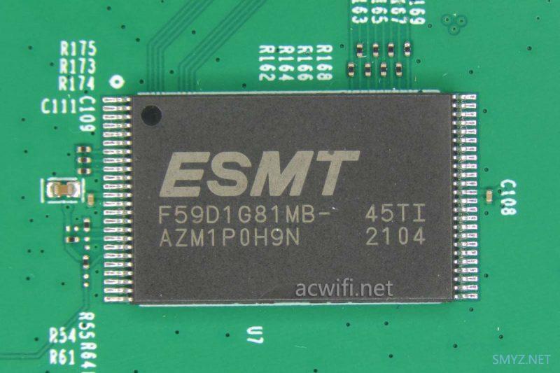 IPQ8078A的旁边有两颗内存芯片,型号是K4A4G165WE,容量512MB,两颗一共1GB内存容量。