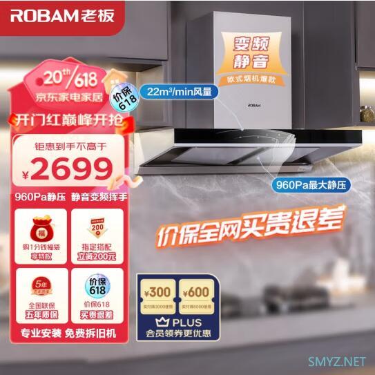 烟机比较重要,吸力20立方以上,好多人说老板的油烟机不错,选了一款22立方的顶吸,即欧式,我就喜欢这种顶吸的油烟机,放多高的汤锅都不怕。预定价格2699元,31号能用300元的优惠券,那么,到手价就是2399元。 支持挥手操作,满手油水的手不用接触面板就可以控制,我觉得这功能没啥用。