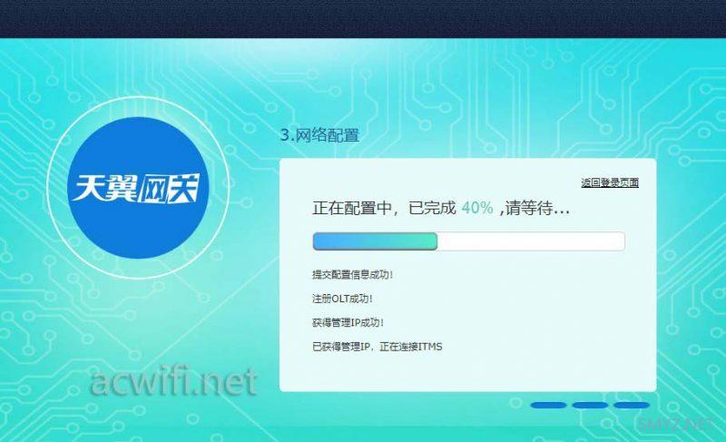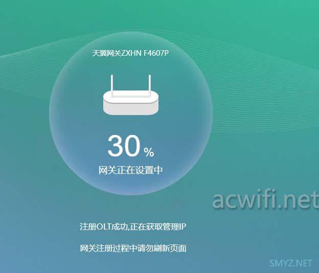 进度到30%时已经提示注册OLT成功了,后面40%会卡住,不用管了。我只需要上网而已。
