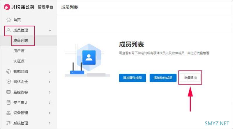 (1)点击【蒲公英管理平台】->【成员列表】->【批量添加】;