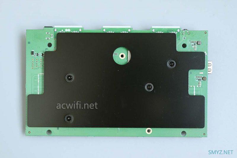 CPU、两颗无线射频芯片、八颗FEM芯片,在主板背面的位置,均有导热硅脂垫片。