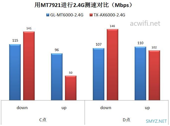 在C点位置,华硕天选路由器表现好些,而在点位置是GL.iNet MT6000优秀一些。