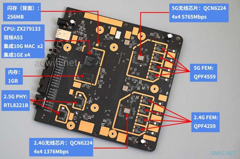 中兴问天BE7200Pro+的所有芯片型号汇总图如下: