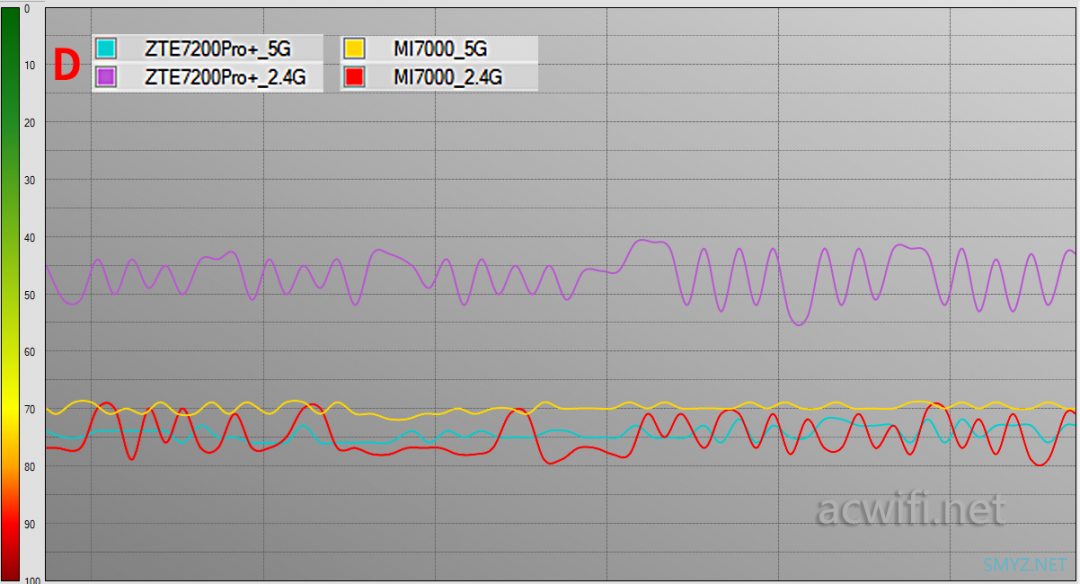 2.4G不用看了,我不清楚这台小米路由7000的2.4G到底是什么原因。可能小米路由7000在13信道特别弱?居然比自己5G信号还要弱。