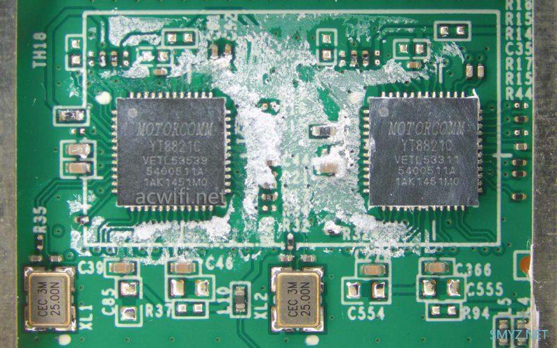 两颗2.5G PHY芯片,型号是裕太微的YT8821C: