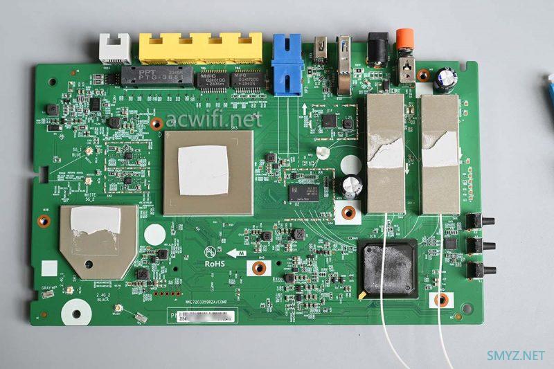 而2.4G无线芯片是用了这颗BCM6705,同样也是2x2MIMO,在40MHz频宽下最高无线速率574Mbps,所以这是AX3000的光猫。