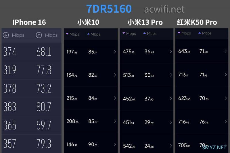 咦好鬼少有IPhone 16手机会比小米10手机快的,有点反常。后面三台手机测速,是没有7DR7230 、7260这样快的,毕竟3x3MIMO和4x4MIMO的差异。