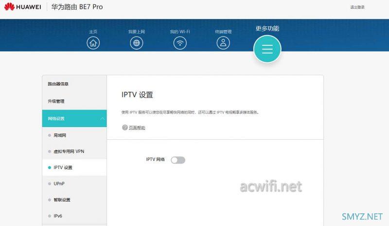 华为的IPTV设置在“更多功能”-“网络设置”里: