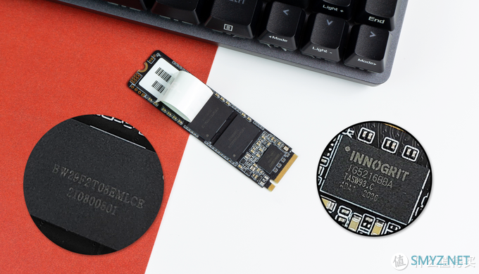 撕开标签查看主控和颗粒。宏碁FA100 SSD的主控使用了新兴厂商英韧科技(INNOGRIT)的Shasta+ IG5216方案。该主控是一款PCIe Gen3 x4、NVMe 1.4固态硬盘主控芯片,最大容量可达2TB。无本地DRAM缓存,主要依赖HMB缓冲,最高顺序读取和写入分别可达3400 MB/s与3000 MB/s。