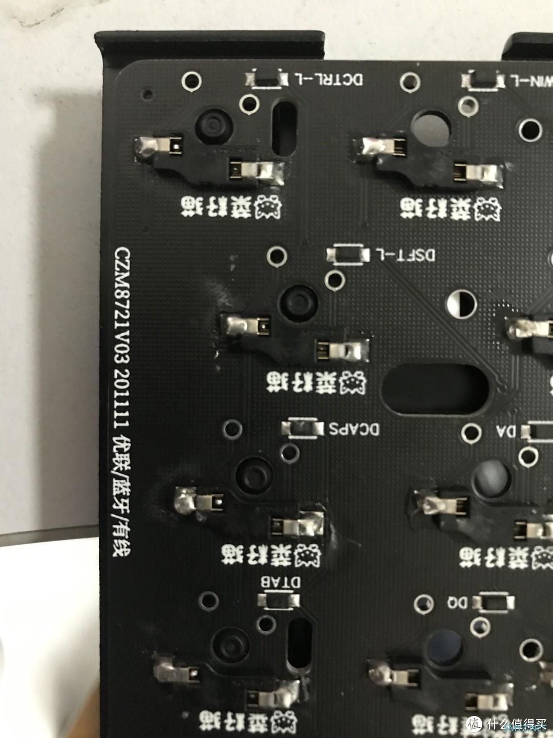 2.轴嘛,不折腾,直接用原拆机茶轴,清理轴脚的残锡后直接将PCB和定位板结合在一起(注意:据说拆机轴的残锡会损坏热插拔轴座,如无必要,千万不要学我!!!)