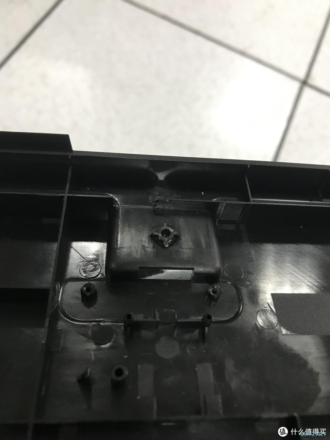 7.为了把电池,主控,键线分离都塞进去,可能需要处理几个地方,就是把键盘里的定位柱和加强筋减掉