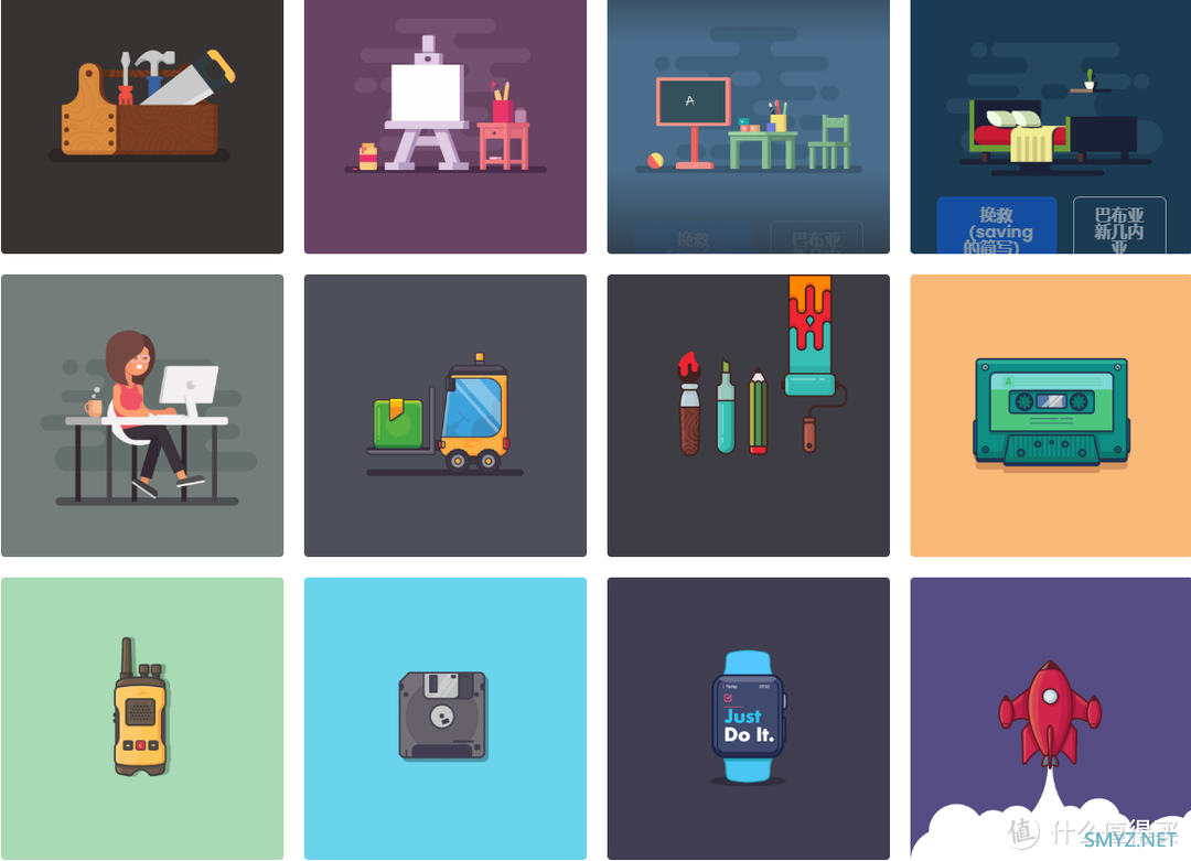 网站有很多卡通风的插画小图,如果当做图标使用也是非常优质的素材。