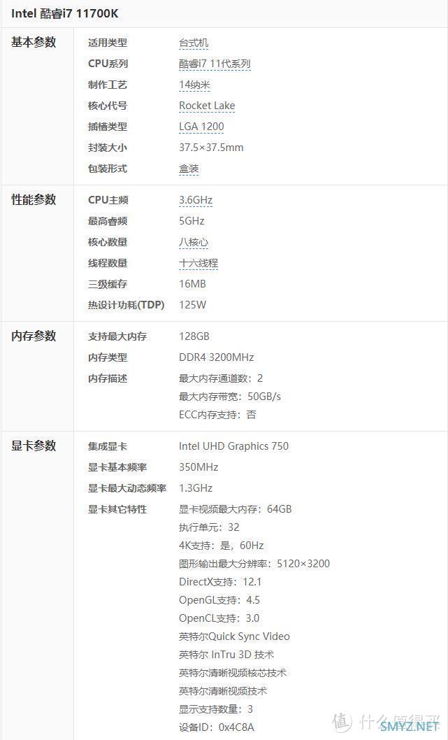 11700K默认主频是3.6GHz,单核睿频最高可以达到5.1GHz,125W TDP功耗。