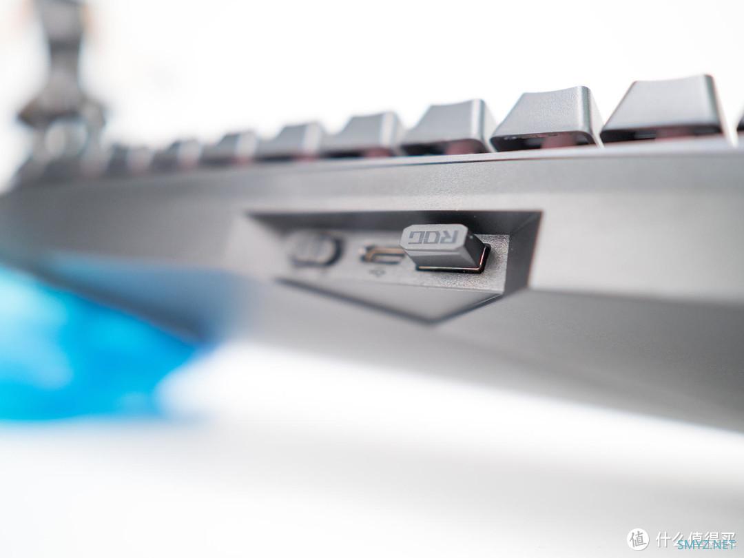 作为一把紧凑型便携键盘,键线分离的设计必不可少,Type-C编织数据线做工扎实,接头处都阴刻有ROG败家之眼的标识。