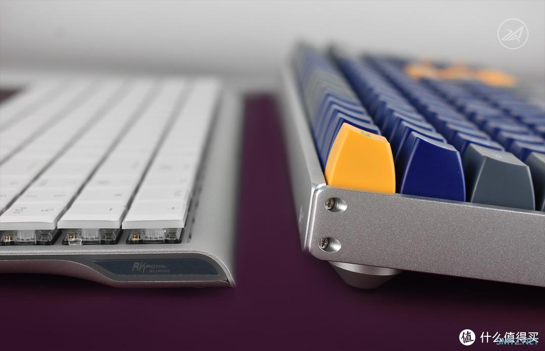 时到今日,纵观RK(Royal Kludge)家所有产品中,给我印象最深刻的虽有这把RK929了,其外形设计非常有特色,紧凑的96键配列,超薄的机身,下边沿厚度仅1.5cm,全铝壳机身双侧加了两道识别度很高的灯带,桌面装饰效果相当不错,尽管是几年前的产品,但放于眼下竟品中,外观上完全不落下风。连接方式是有线+蓝牙无线双模,支持 windows/Mac/Android多平台。