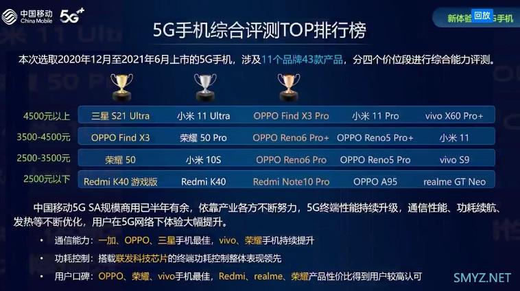 本次选取了2020年12月至2021年6月上市的5G手机,涉及11个品牌43款产品,通过四大维度、15个关键指标和100项测试指标,分四个价位段进行综合能力评测。