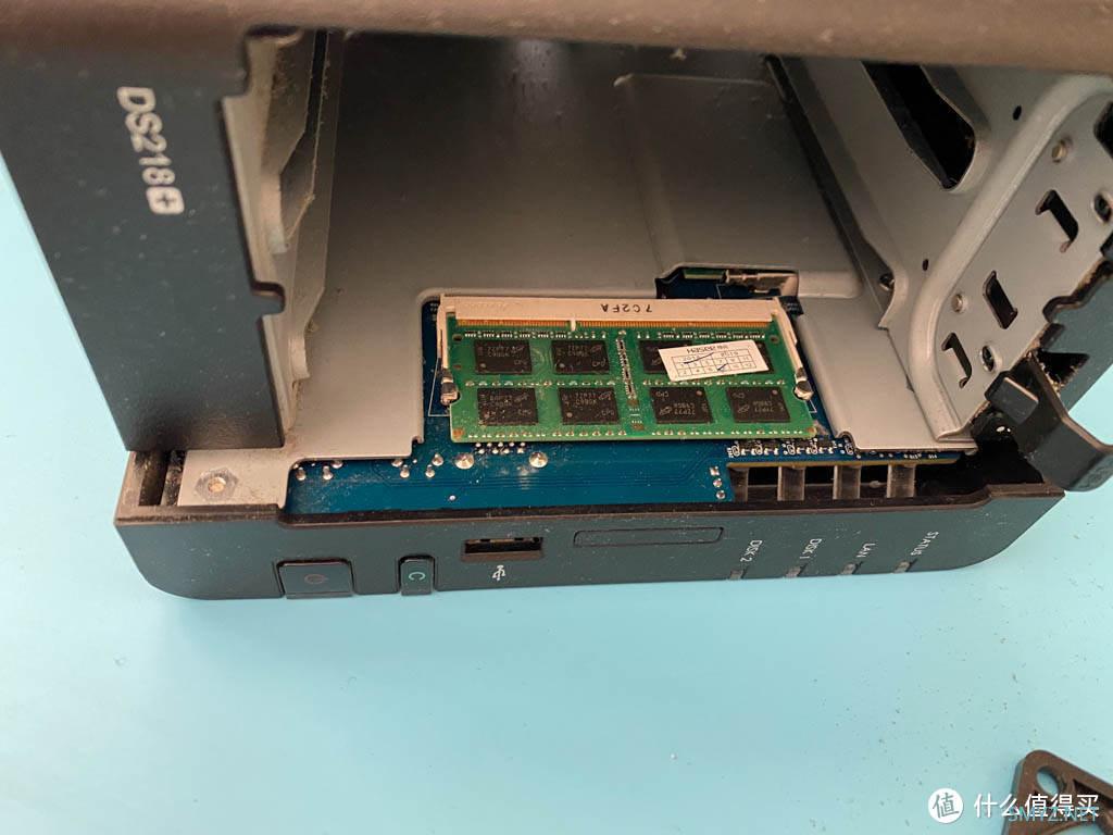 这是主板完整的背面,群晖随机的是2GB内存,可以自己更换。为什么要用更多的内存,因为要用到Docker啊,可以干更多的事情。顺便清理下。