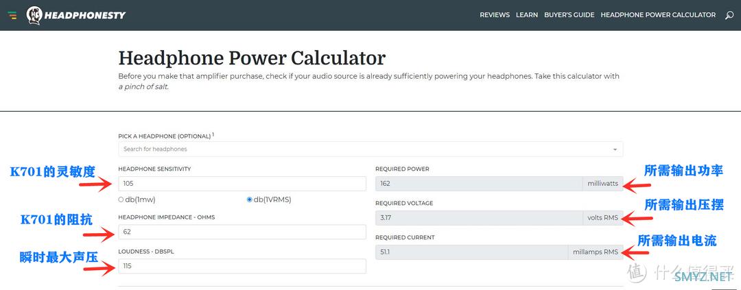 当然现在更方便了,我们可以通过一些小工具直接获得,也可以通过国外专业网站来获取。这里给大家分享一个耳机需求功率的网站,下文的数据计算也都会依据该网站的数据。