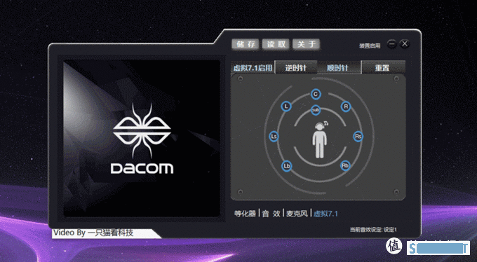 当然,Dacom GH05 作为一款桌面级游戏耳机功能不仅于此。用户可以通过官网下载PC端的扩展功能插件解锁更多设置,在PC端提供了强大的等化器、音效、麦克风、虚拟7.1四大项的自定义调节;在等化器下用户可以预设四个不同频段的EQ+3D的场景效果,针对麦克风送话能力的增益,更可以根据自己需要自由选择虚拟7.1音效的声场角度位置,通过设置以获得游戏外的绝佳音乐欣赏与观影体验。