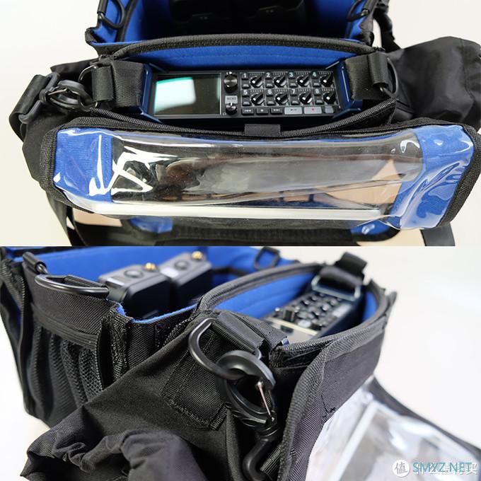 这个是正确的全部系统应用上去之后的样子。这个时候肩部背带的钩子勾住录音机包最内侧的钩子。腰部背带的两个钩子分别勾住录音机包外侧和底部的钩子作为支撑和保护。此时外骨骼脊柱支撑住上半身的背带,把力量分散给躯干和腰部,解放肩膀。可以看到肩部背带肩膀的部分其实是空着的。当然,具体钩子怎么挂可以根据实际情况作为调整,其实说明书也没有明确的使用规范。ORCA-444yes!