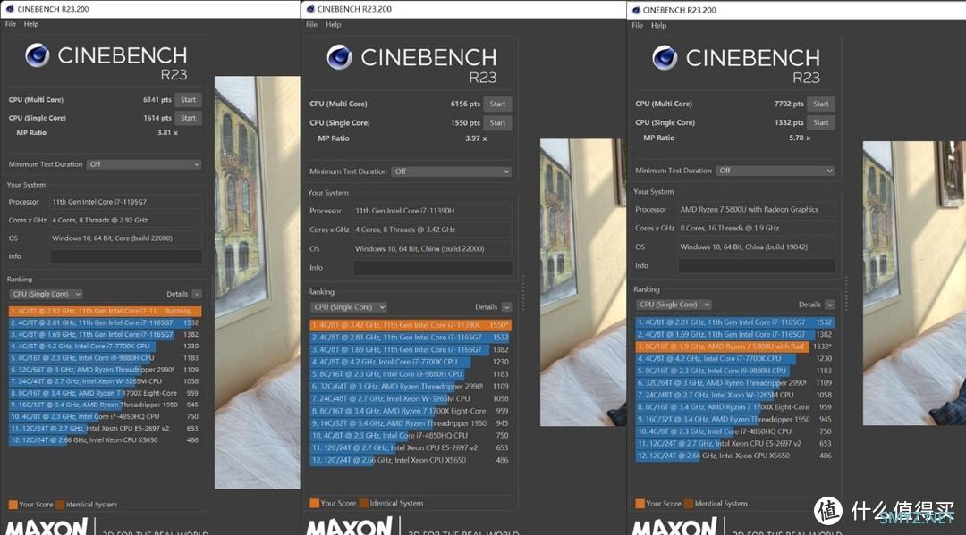 从 R23 的成绩也能看出,单核 1614 pts,多核 6141 pts,相比之前测试的 i7-11390H 综合表现还要强,已经很接近部分 R7-5800U 的成绩,所以很期待它在实际使用中的性能表现。
