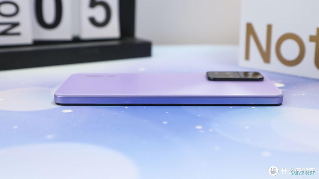 Redmi Note 11 Pro机身背面采用的是棱角分明的直角设计,对于像我这样喜欢直屏的人来说,还是非常贴心的。机身配色这次体验的是时光静紫版本,整体基调为较淡的浅紫色,在光线的映衬下,会呈现出浅浅的银色流转,配上8.34mm的厚度以及207g的重量,整机的握持感还是非常出色的。