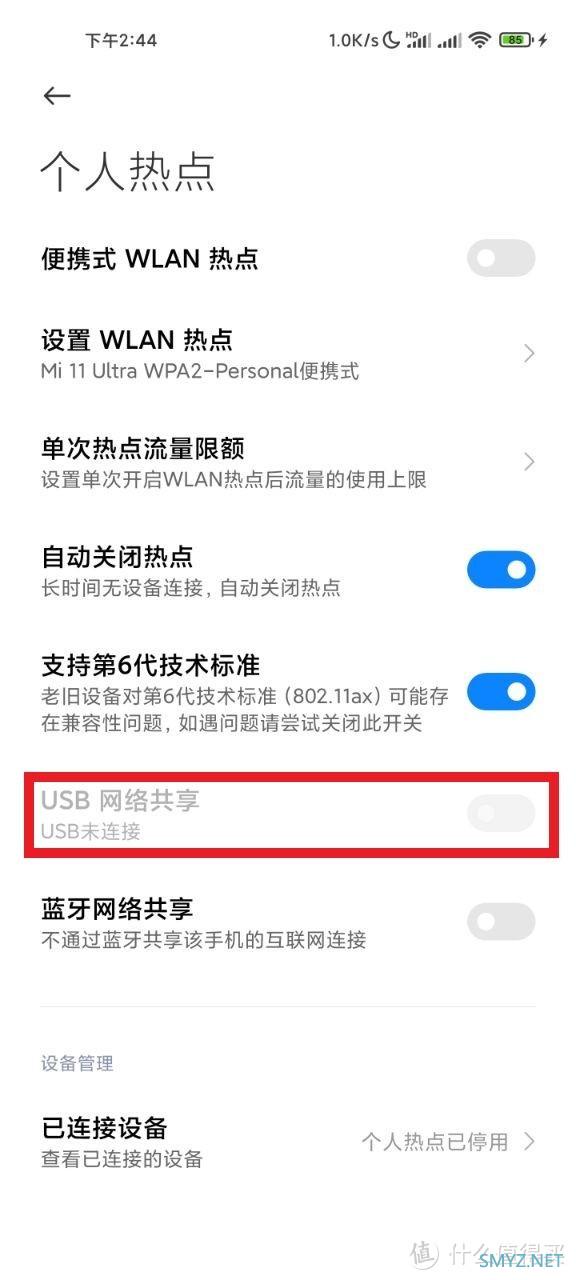 但现在我的小米11U的WiFi坏了,那么只能用另一种方法实现了,就是断开PC所有网络(有线连接&WiFi),通过手机的“USB共享网络”来上网