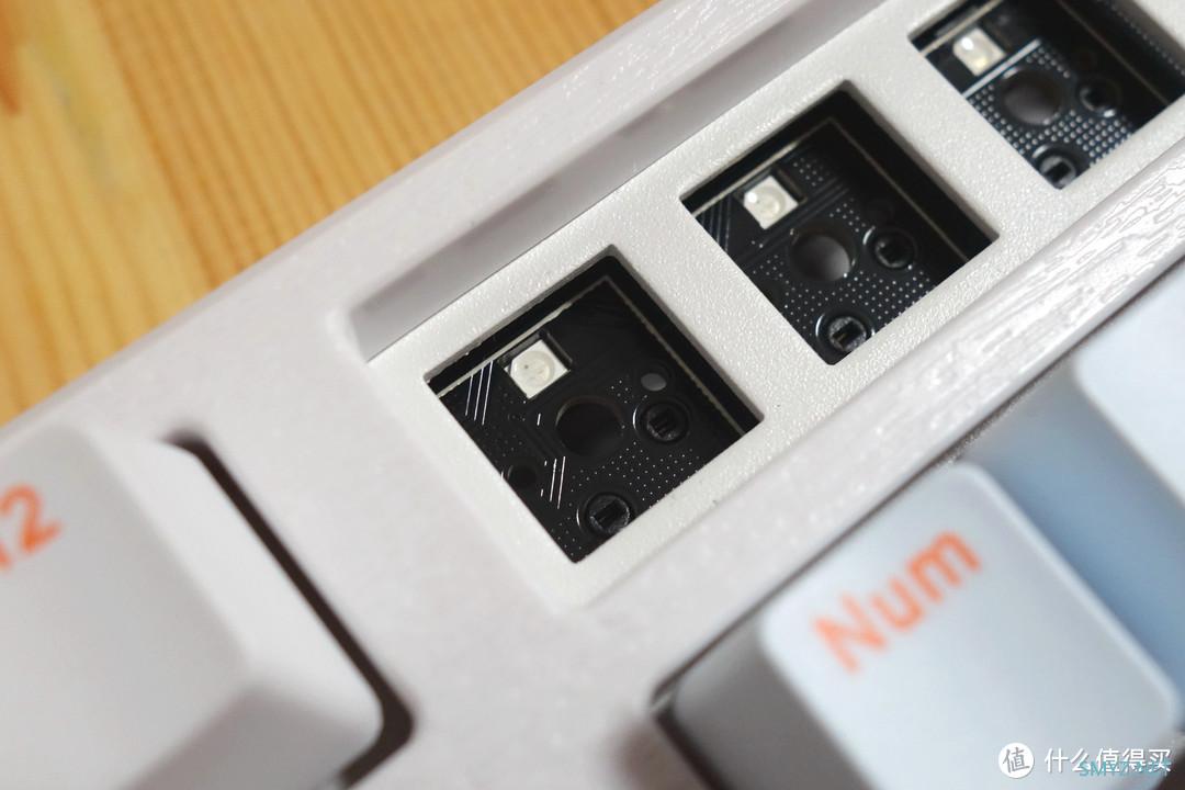 和LOGO一样,键盘的指示灯也是被搬到了ESC和F1之间的位置上,有点夹缝求生的味道,空间利用率很高。
