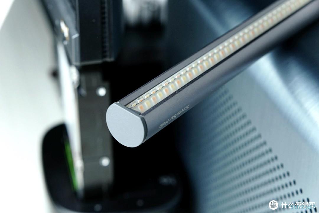 ▼ScreenBar Halo的光线不是直射出来的,而是通过荧光灯内部进行反射之后再照射出来,用了新的专利,组合曲率控光技术,从而使光线不会照射到屏幕上也不会直射眼睛,照到桌面的效率还足够高。官方数据说减少了89.8%的屏幕反光,从对比图上来看也确实很明显,halo的非对称光型分区十分明显,光路边缘锐利清晰,而且怎么调整灯管的角度,光线都不会照射到人眼。光源采用冷暖两种色调交叉排列,能够提供500Lux的照明亮度,并且显色指数Ra>95,高显色性可以降低视觉疲劳,让视野更清晰。