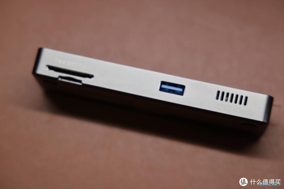 再者,这款DOCKCASE七合一拓展坞还有一个好的点在于接口足够多样,有USB-C、USB-A、HDMI以及TF/SD卡槽的接口,侧边还有散热孔位,可以很好地应对工作上的需求。