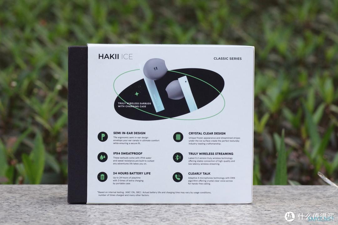 这款HAKII ICE耳机的包装也非常独特,正面的产品型号“ ICE”采用了镂空的设计,加上黑色的色调,强化了产品的识别度,使得整个包装看起来很酷,而包装盒背面印有耳机的卖点,用户可以通过上面的信息对这个产品有一个基本的了解。