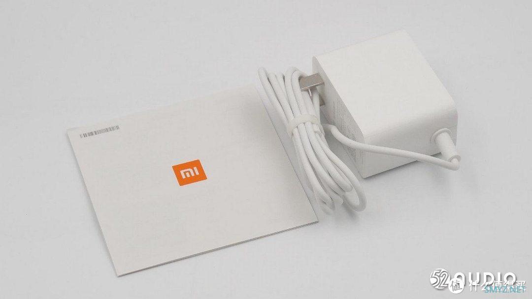 打开包装,取出其中的配件,包括了印有小米Logo的说明书和白色电源适配器一个。