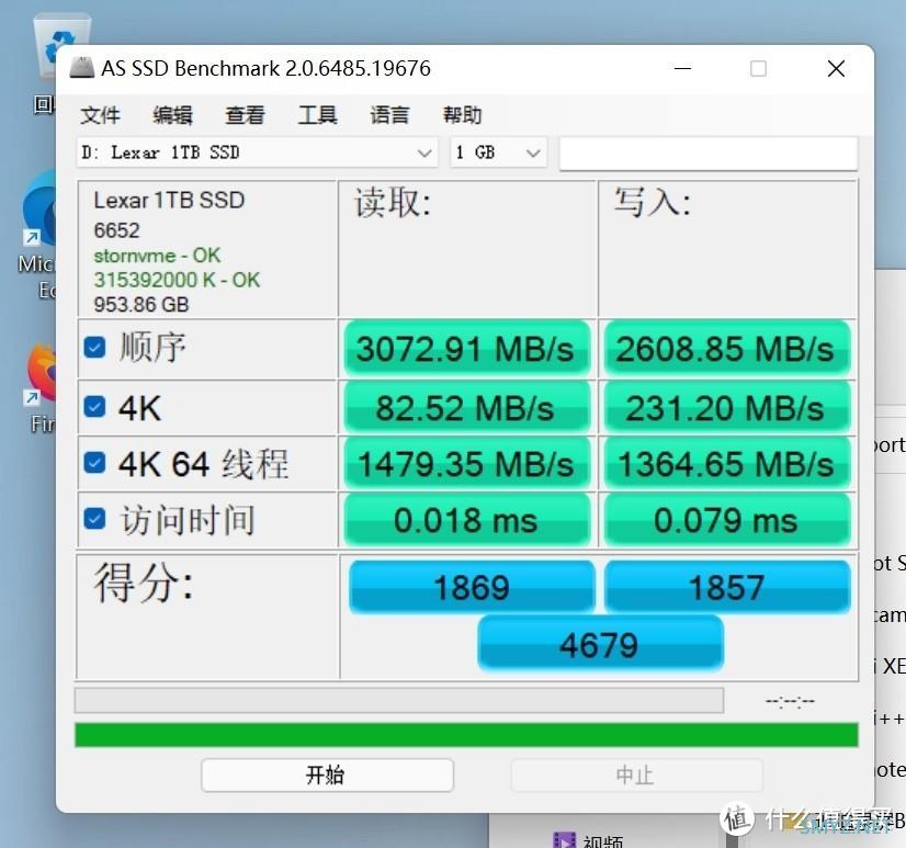 雷克沙NM620 1TB硬盘,采用PCIE3.0协议,标称高达3300读取、3000写入,用AS SSD Benchmark实测也接近标称值。顺序读取高达3072.91MB/s,写入速度2608.85MB/s,尤其是4K表现也很高,总分高达4679,价格只要599,值得推荐!