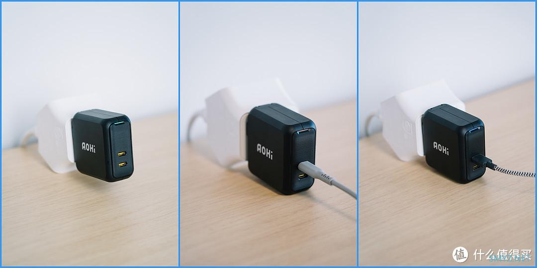 我之前就说过,现在的100W充电器绝大部分都采用了4口。但很多时候我们都不需要这么多接口,所以Aohi这次算是打破常规,给了一个新选择。