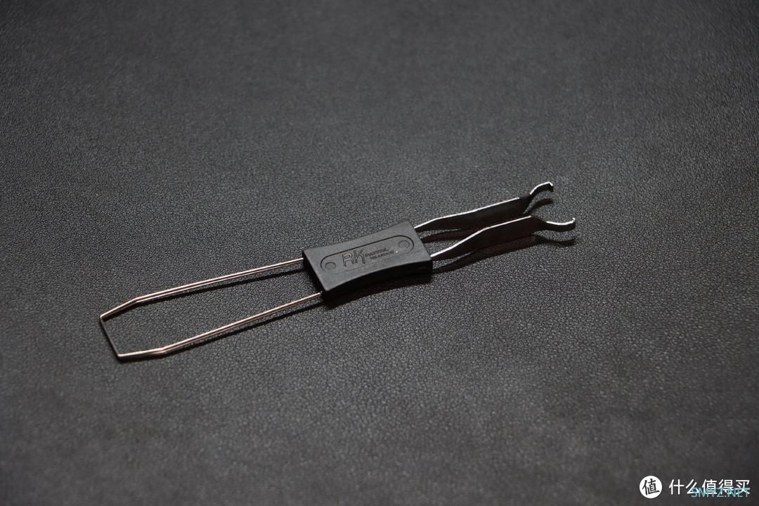 ▲所附赠的拔键轴器 一端为拔键帽的钢丝拔键器 另一端为拔轴的拔轴器