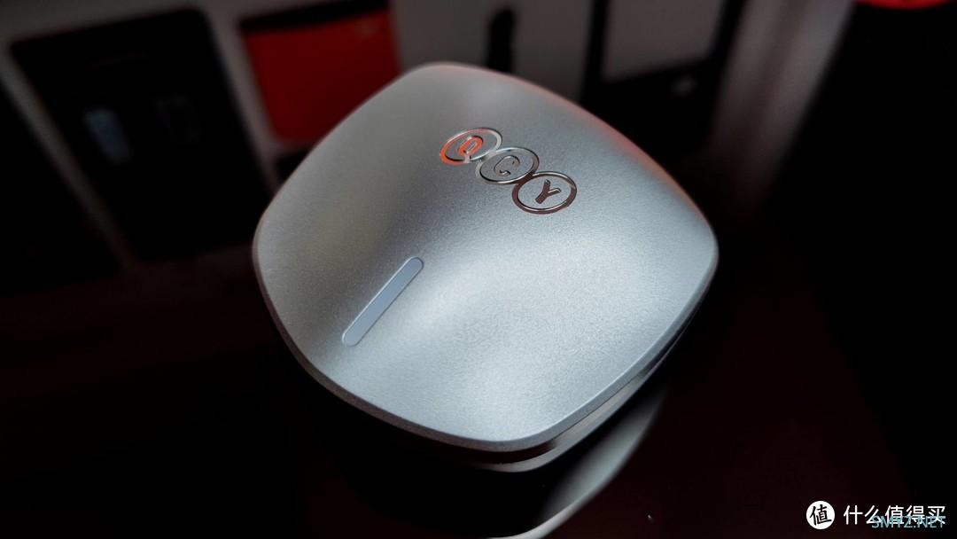 耳机仓盖上面刻印着QCY的标志,下面是一个长方型的呼吸灯,整体做工不错,上手摸起来质感也可以,充电接口在充电仓的后面位置。打开仓盖里面就是耳机主体,整体布局还算紧凑,耳机的下面是一个呼吸指示灯和重置按键。