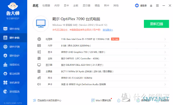 今天我们要测试的这一款机器,应该说是近期微型机准系统里最具代表性的一款产品,它就是戴尔商用OptiPlex 7090 MFF(微型机),标配准系统搭载第11代智能英特尔® 酷睿™ i5-11500T (6 核,12MB 缓存,1.5GHz 至 3.9GHz,35W)处理器,8G DDR4 3200MT/s 内存,M.2 256GB PCIe NVMe Class 35固态硬盘,集成intel UHD Graphics 750 显卡(性能比上一代630有很大提升),Intel AX201无线网卡,系统为Windows 10 64位家庭中文版;其实已经有很多博主对这款机器在微软平台下进行过测试,总体表现还是非常棒的;这次花了3299买了一台,除了看看它在微软平台下的表现外,主要还是为了看它在黑苹果系统和统信系统(UOS)下对于各应用软件的支持及兼容情况,好了,废话不啰嗦,先上配置再上图:【机箱】OptiPlex 7090 微型机