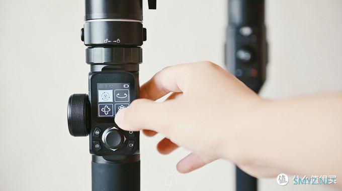 触屏设计且完备的菜单,可以脱离手机独立使用。实现三轴跟随/锁定的切换,实现跟随速度的调节等。触摸屏也让一键盗梦空间、一键横竖拍切换成为可能。