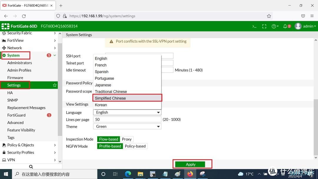System--->Settings--->Language 选择 Simplified Chinese点击确定按钮Apply