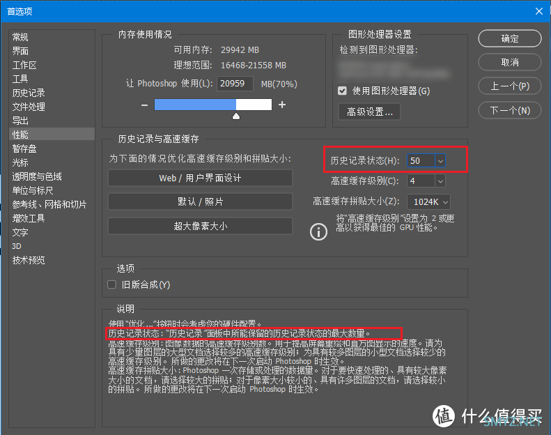 PS的撤销不是默认无限的,需要通过PS检查设定,选择实际需要的数值。5.1 PS-》编辑-》首选项-》性能。