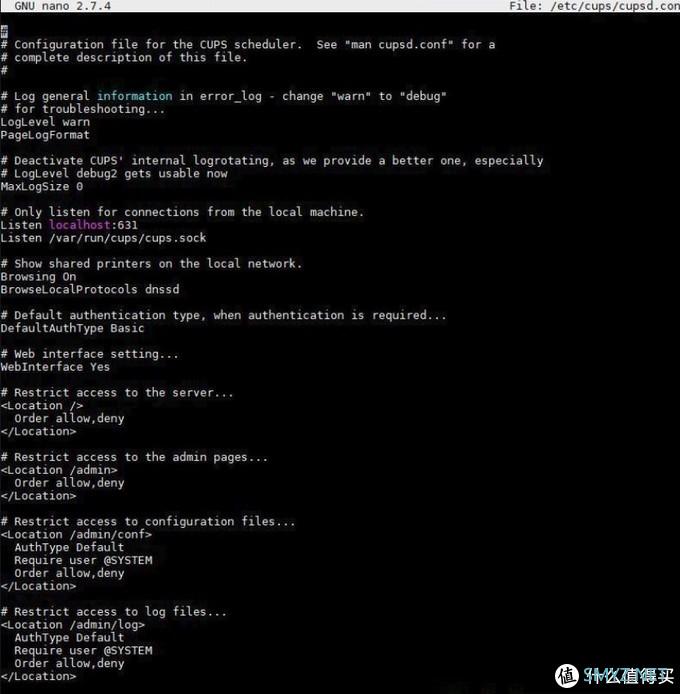 命令行输入nano /etc/cups/cupsd.conf