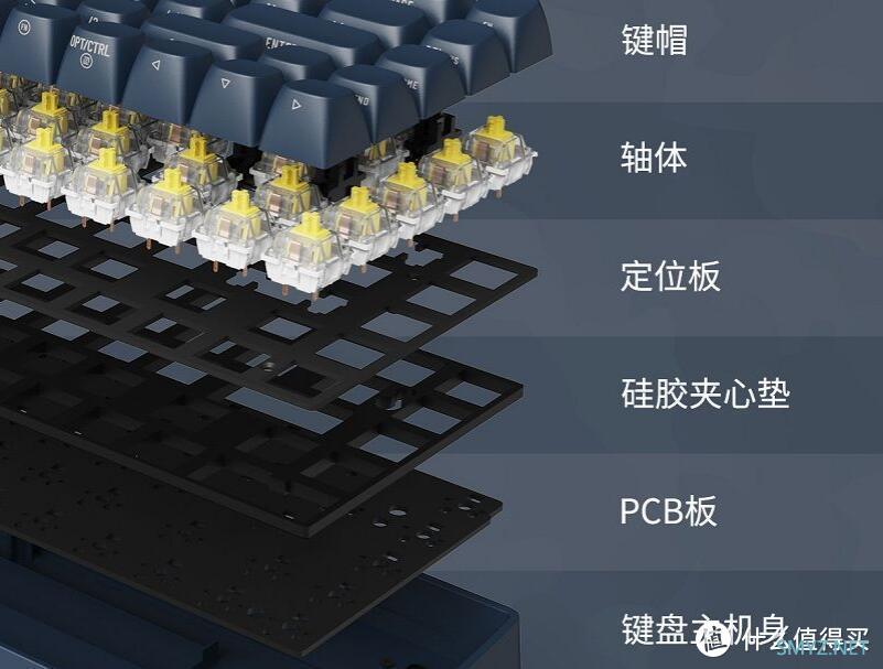 Lofree洛斐小翘配备的是Gateron黄轴Pro,总键程4.0±0.4mm,无论办公打字还是玩游戏都非常柔和丝滑,设计师在pcb板以及定位板之间增加硅胶夹心垫来消除空腔音,所以在打字时候声音很小,比市面上常见的机械键盘咔咔咔的声音要小很多,在办公室使用毫不影响其他同事办公或者午休。