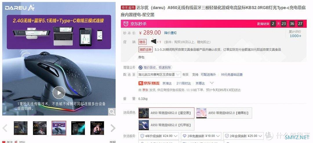 达尔优(dareu)A950无线有线蓝牙三模轻量化游戏电竞鼠标KBS2.0RGB灯光Type-c充电带底座内置锂电-机甲版289元京东去购买充电底座无疑是这个鼠标最大的亮点,将人家大几百旗舰才拥有的配置下放,并且这鼠标一套还到人家一个底座的价格,关键是功能和体验上一点不比别人差,让我想起了某位模仿明星的口头禅‘走别人的路,让别人无路可走’。