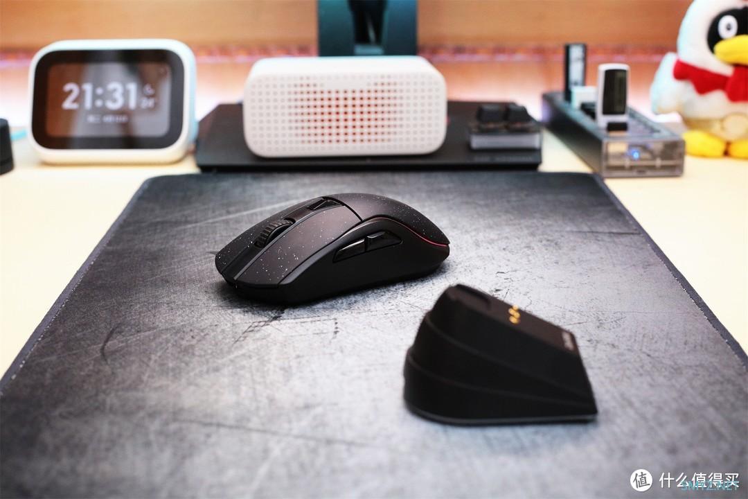 对于无线鼠标来说,充电底座是一个用了就再也回不去的存在,不仅看起来更高端,充电速度快,能当延长HUB用,还配有灯光,最关键的是鼠标放上去之后,格调满满,人家的鼠标只能躺在垫子上,但我的鼠标可以在桌面上‘翱翔’。