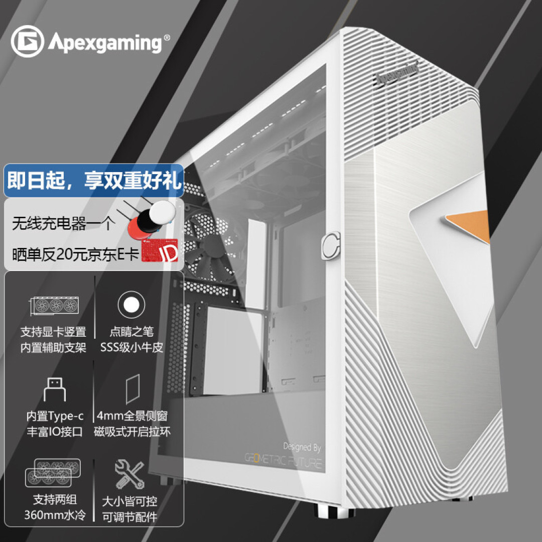 艾湃电竞(Apexgaming)GAIA白色机箱铝拉丝套件面板支持竖装显卡/双U3+Type-c/磁吸玻璃侧透/双360水冷/EATX499元京东去购买机箱我选用艾湃电竞的GAIA(中文名“盖亚”),好看的机箱需要正面给个特写。正面设计成一个字母“G”的概念,在为GAIA正名。