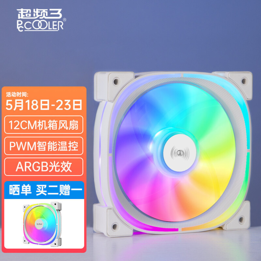 超频三(PCCOOLER)EF120白色ARGB12CM机箱风扇(双光圈/减震低噪/PWM智能/5V神光同步/配螺丝)99元京东去购买GAIA最多支持安装7把120mm风扇,那就安排!超频三EF120风扇,支持RGB灯效,全白再次伺候。