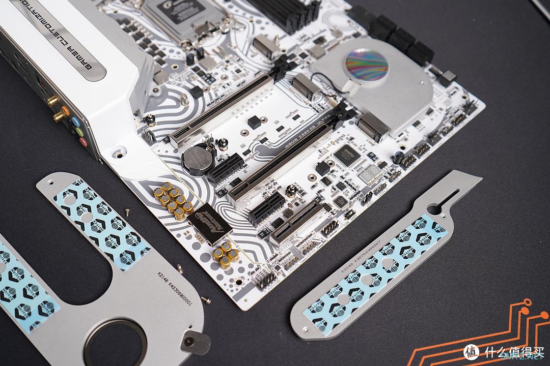 ▼当然,如果仅靠金属散热显然是不够的,在M.2散热装甲下方都提前贴好了散热贴,细节考虑周到。