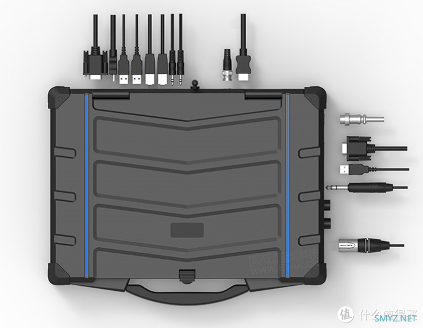 思必驰转写一体机T1有两个版本,一个是便携式,外观与笔记本无异;另一个是加固式,也是这次我拿到的版本。产品正面处有一个手提带,可以直接拿起,不管去哪里的会议室,都可以随身携带,非常方便。